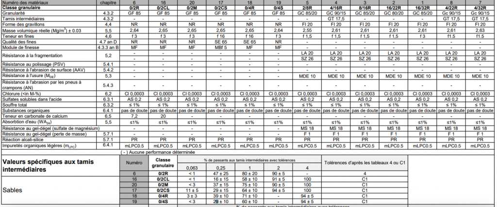 Cette classification oriente le choix des granulats selon l’exposition climatique des ouvrages, garantissant leur durabilité en environnement sévère.