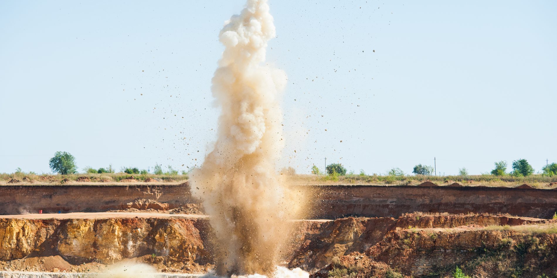 Avant chaque tir, une zone de sécurité est délimitée autour du front. Son rayon dépend de la masse d’explosif mise en jeu et des conditions locales — généralement de 200 à 500 mètres pour les tirs courants. Tous les personnels présents sur la carrière doivent se trouver hors de cette zone avant le déclenchement. Les accès sont physiquement bloqués. Un signal sonore d’alerte est émis avant le tir.